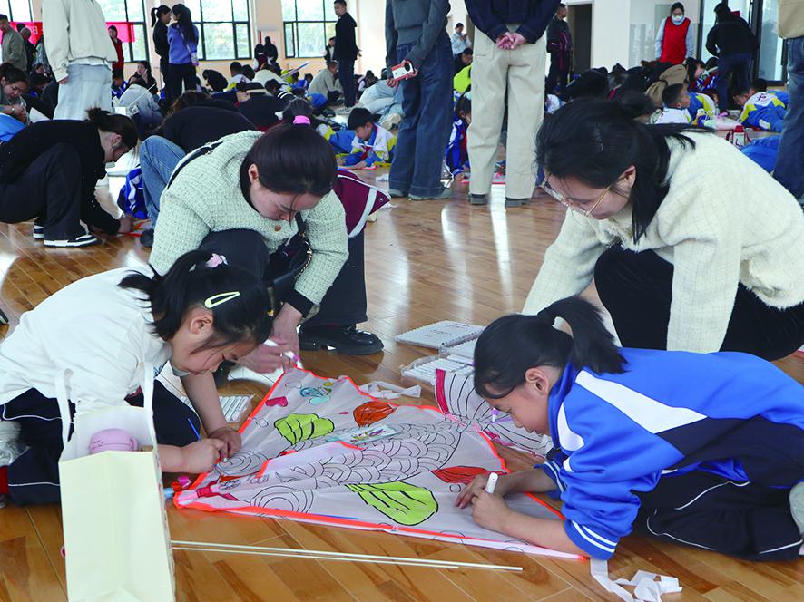 手绘风筝区域格外热闹,一年级学生杨愿熙正和爸爸妈妈一起,手持画笔认真勾勒图案、涂抹色彩。家长刘婷婷表示:“学校举办这样的户外活动,既能让孩子放下电子产品、锻炼身体,又能拉近我们与孩子的距离,非常有意义。”